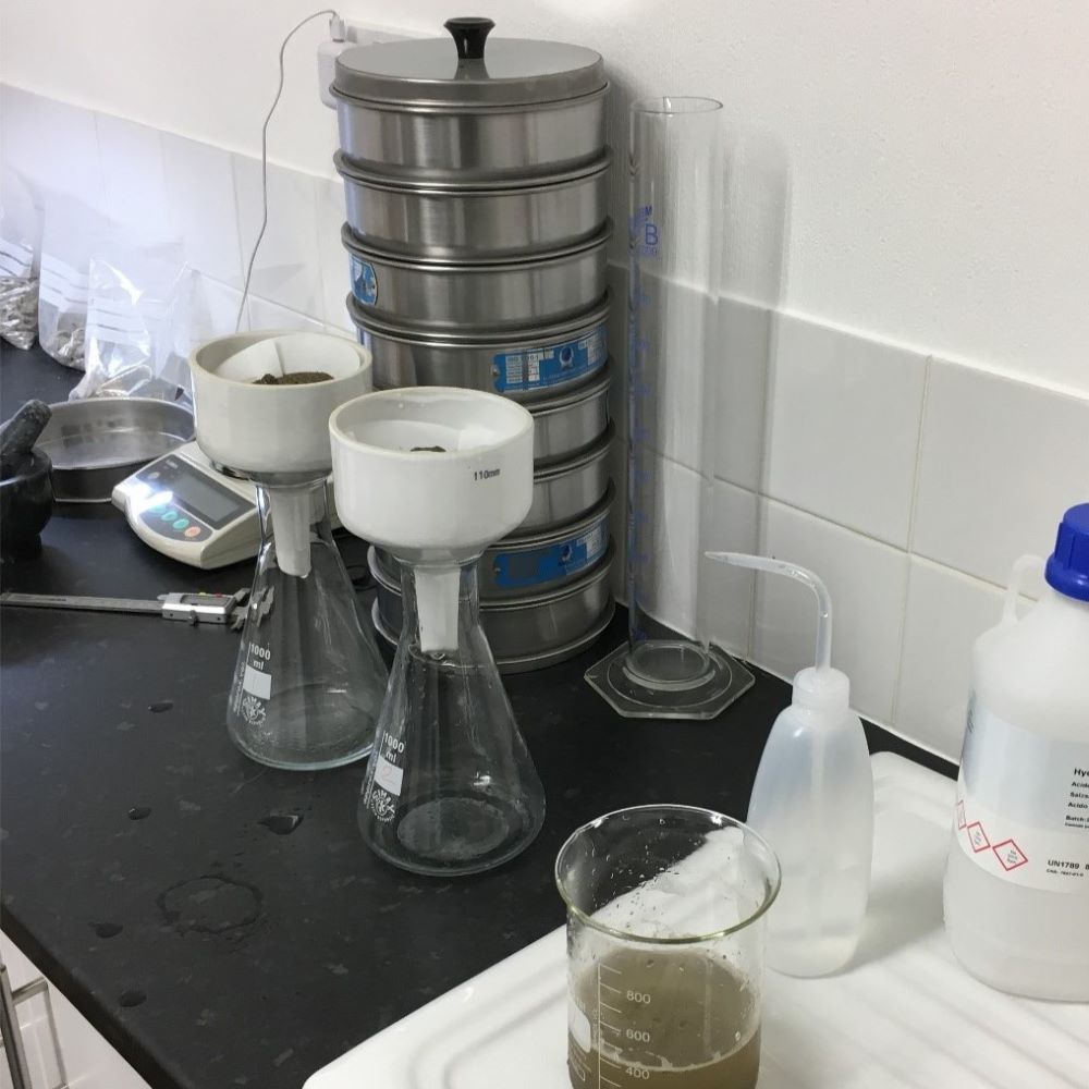 Our standard mortar analysis service combines visual examination (by eye and microscopy), indicator tests and acid dissolution. This process essentially separates the aggregate from the binder, allowing calculation of the sample mix proportion (lime: sand), and grading and matching of the aggregate.